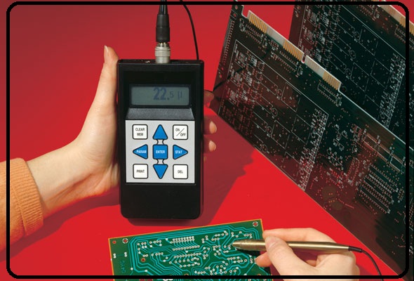 The ITM-52 basic unit is adjustable for thickness of PCB, electrical conductivity, measuring units (metric or imperial), high and low limits, local time and alarm. It stores up to 15,000 readings and has IR-port downloading capabilities. Built-in functions include number of readings taken, min/max readings, mean value, standard deviation, range, Cp, Cpk, histogram. It is battery powered and equipped with an internal charger.